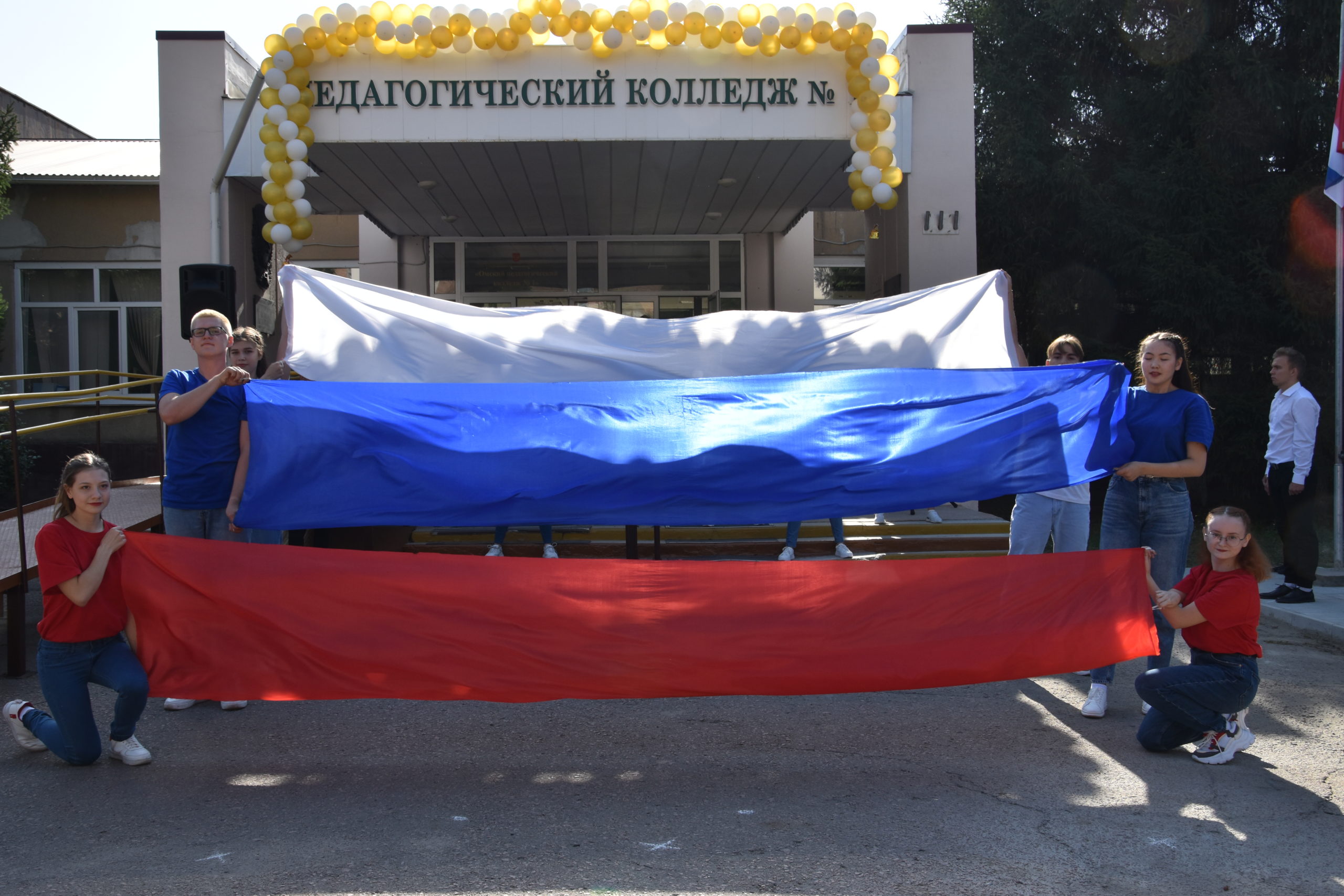 Студенты первых и выпускных групп сегодня увидели танцевальный флешмоб «Флаг России – гордость наша», подготовленный хореографической студией «Ритм».