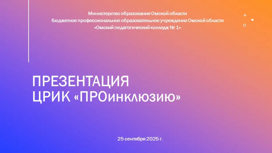 25 сентября 2025 г. состоялась презентация Центра развития инклюзивных компетенций (ЦРИК) «ПРОинклюзию» в БПОУ «Омский педагогический колледж № 1» (БПОО)