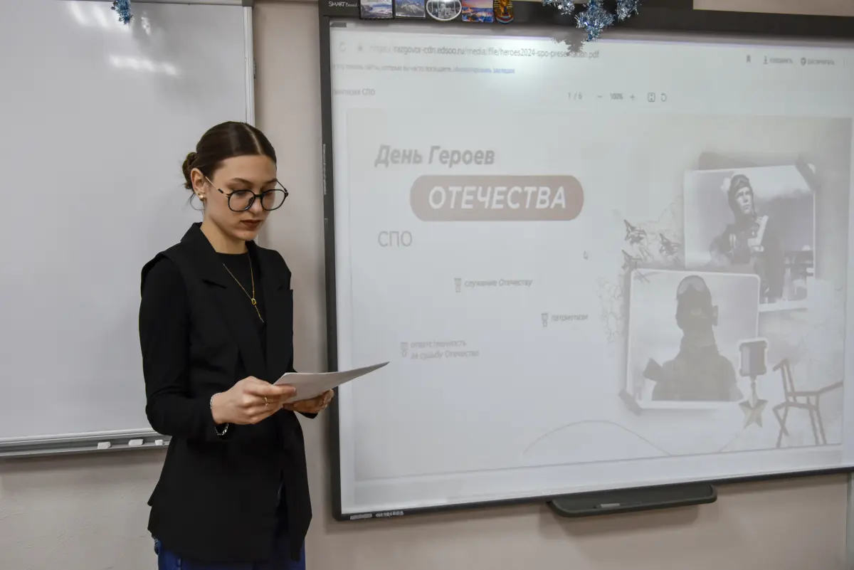 9 декабря в нашем колледже прошли классные часы в рамках «Разговоры о важном» на тему «День Героев Отечества»