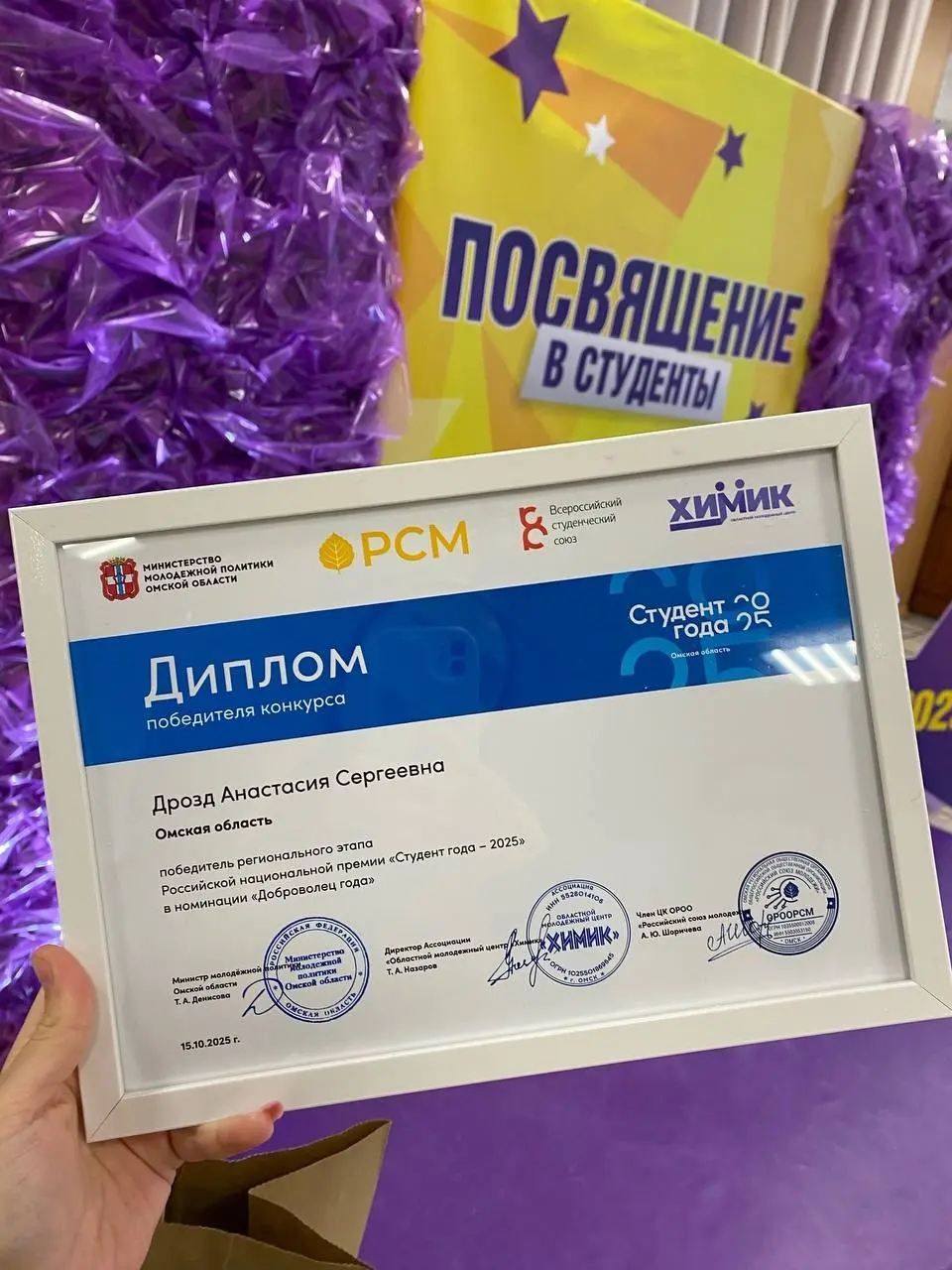 Студентка колледжа Дрозд Анастасия — «Доброволец года» регионального этапа Национальной премии «Студент года».