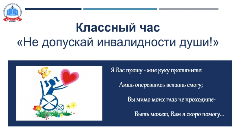 Классные часы для студентов колледжа «Не допускай инвалидности души!»