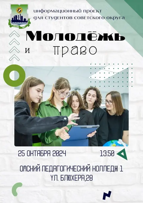 В рамках программы города Омска «Развитие физической культуры, спорта и молодёжной политики» реализуется проект «Молодёжь и право». 25 октября 2024 года студентам третьего курса Омского педагогического колледжа №1 были заданы вопросы:
