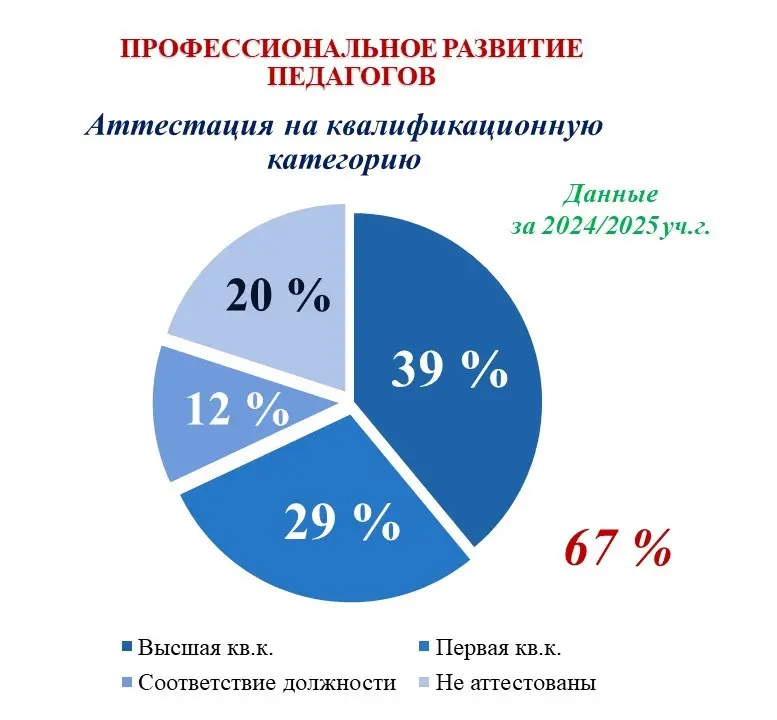 На данный момент в БПОУ «ОПК №1» 65 % педагогических работников имеют квалификационную категорию.