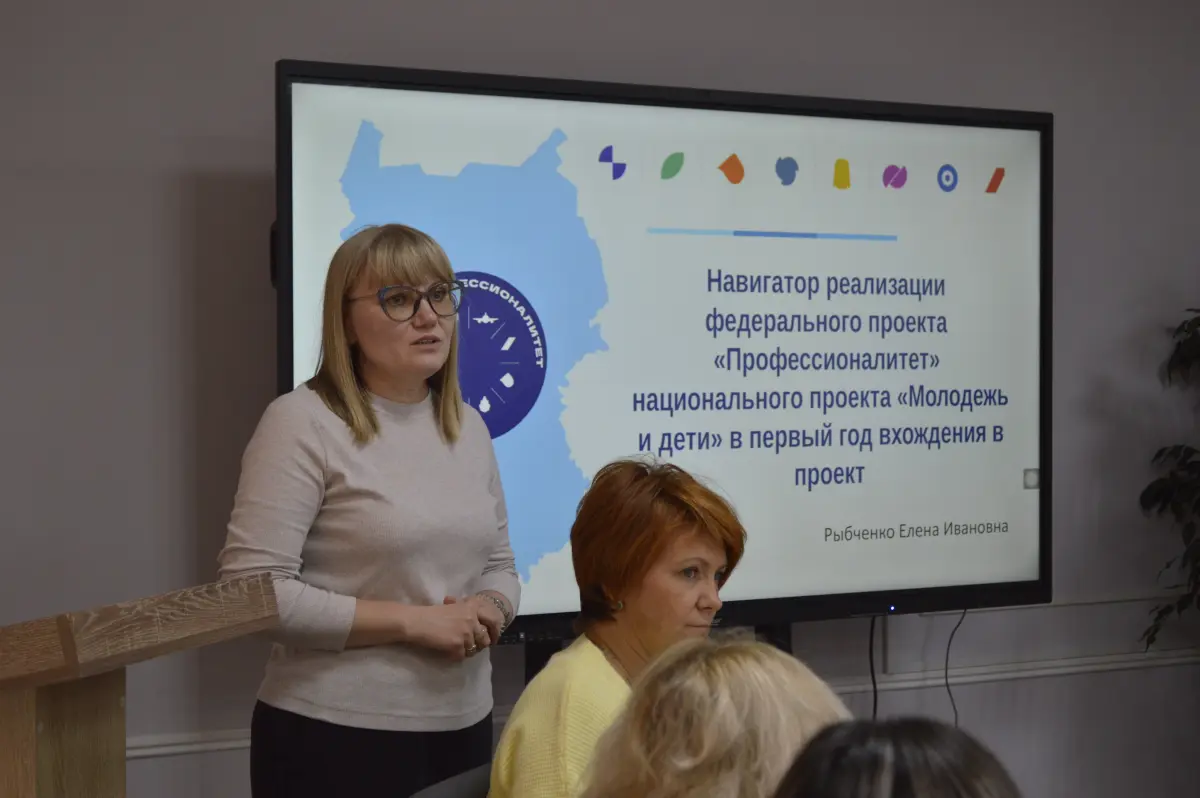 В совещание приняли участие представитель Министрества образования курирующий вопросы ФП «Профессионалите» Овчаренко Ольга Григорьевна и методист БОУ ОО ДПО «Институт развития образования Омской области» Рыбченко Елена Ивановна, которая рассказала основные аспекты работы в первый год вхождения в проект.