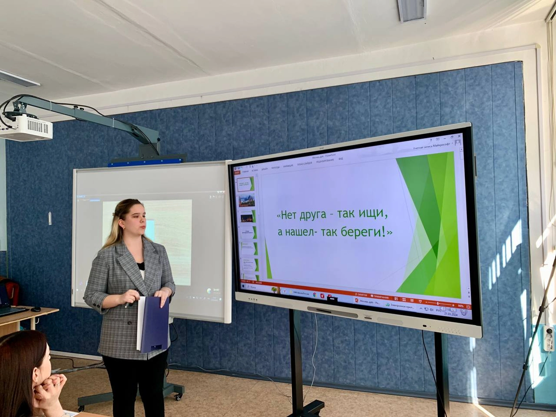 Показательные занятия прошли с участием заведующего школьным отделением Т.Т. Евсеевой, методиста С.Н. Саверской, педагога-психолога Ю.П. Баранниковой, ответственных за подготовку преподавателей: А.С. Шмуленковой и Е.Г. Дынько. Участница продемонстрировала выполнение конкурсного задания: «Подготовка и проведение фрагмента урока по предмету «Окружающий мир» во 2 классе с применением интерактивных методов (виртуальная экскурсия с использованием маршрутного листа).