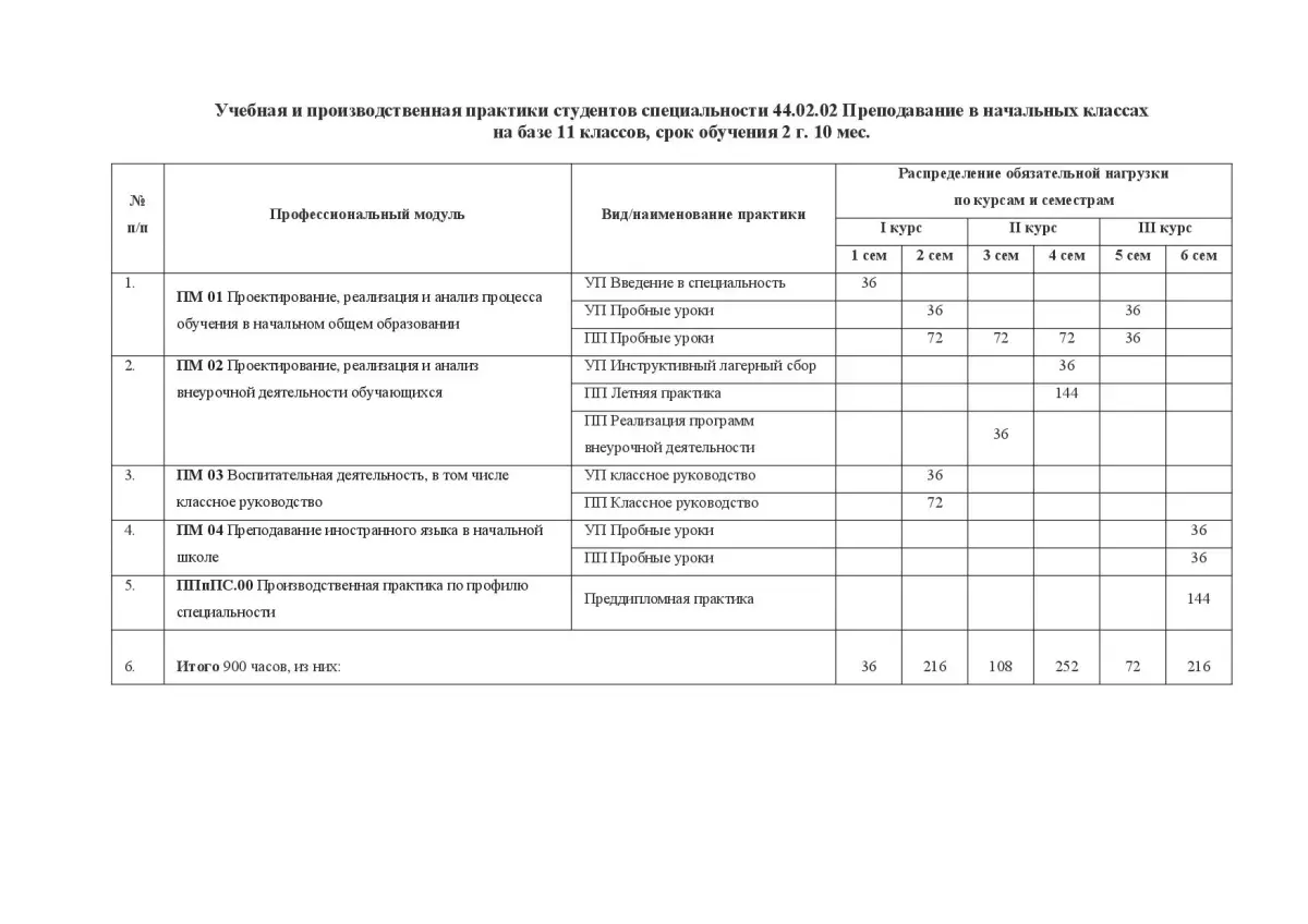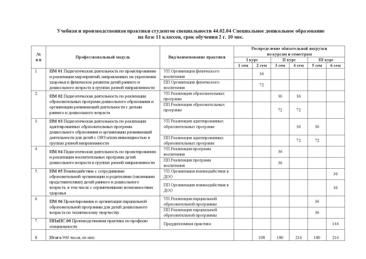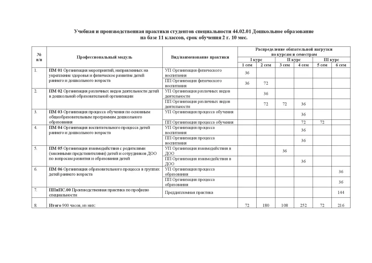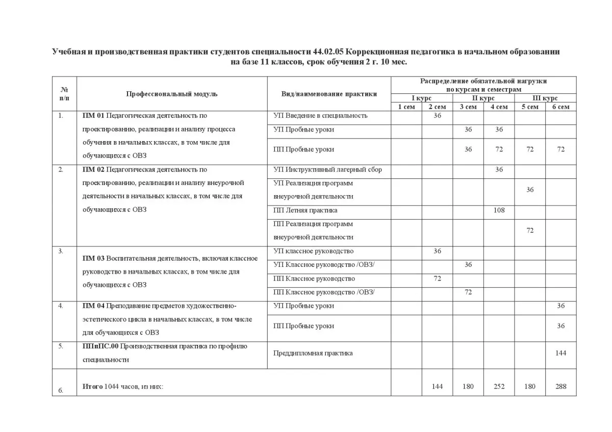 БПОУ «Омский педагогический колледж № 1» планирует и утверждает в учебном плане все виды и этапы практики в соответствии с ППССЗ: