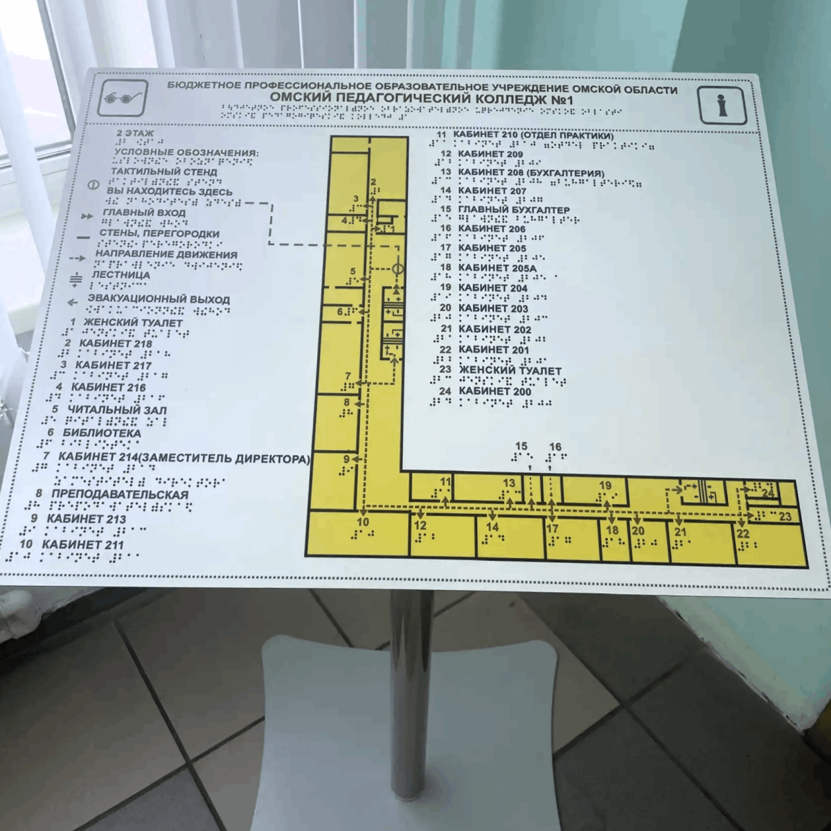 - тактильные мнемосхемы настенные и на стойке для ориентирования на этажах