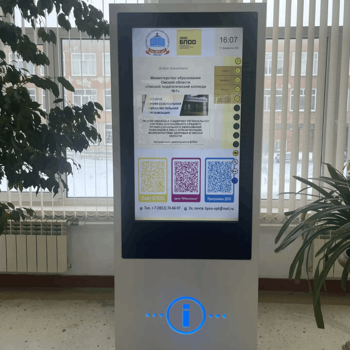 - информационный терминал: вывод информации об организации для инвалидов по зрению, нарушениям опорно-двигательного аппарата